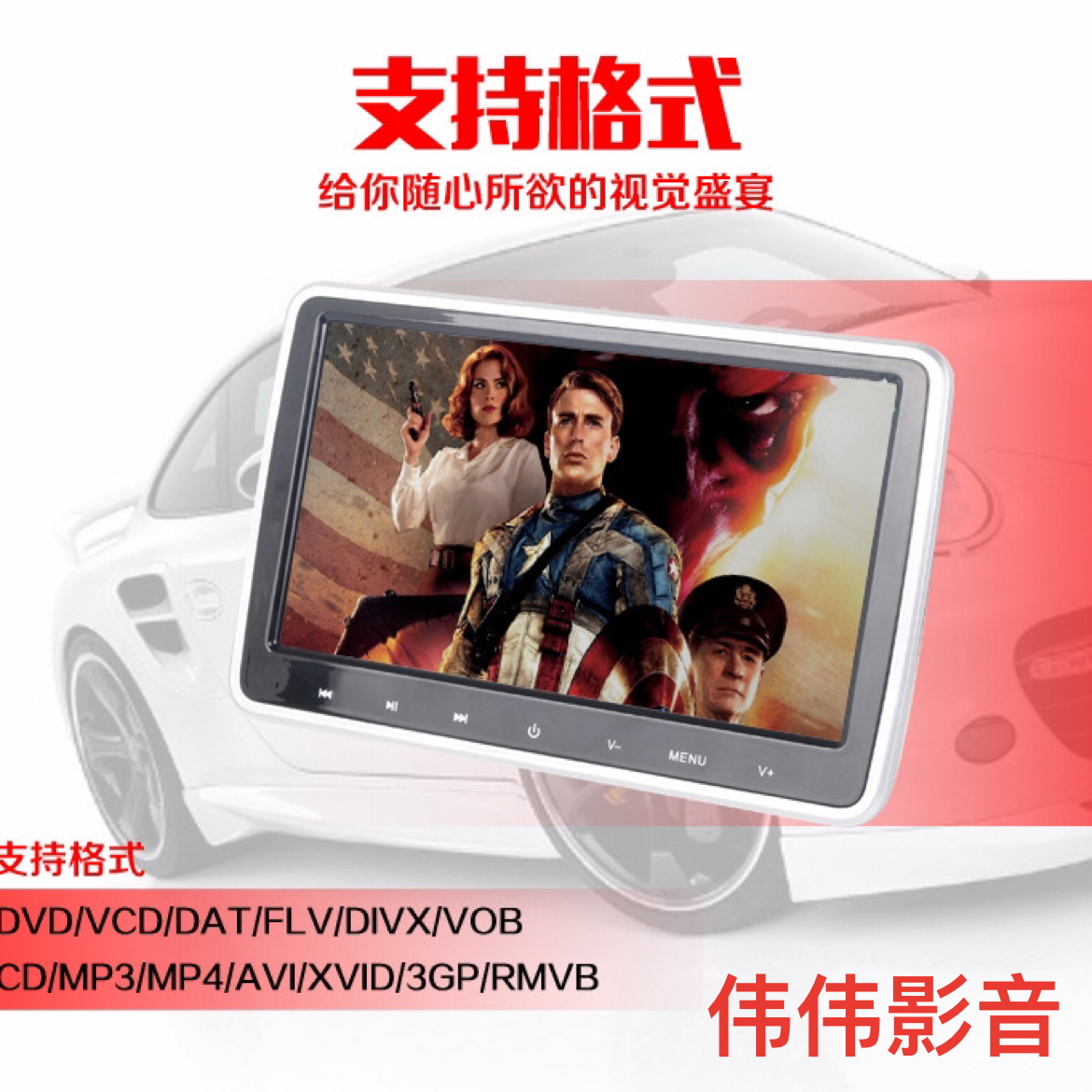 9寸头枕DVD, 9寸头枕显示器, 头枕DVD, 头枕显示器,MP5.安卓