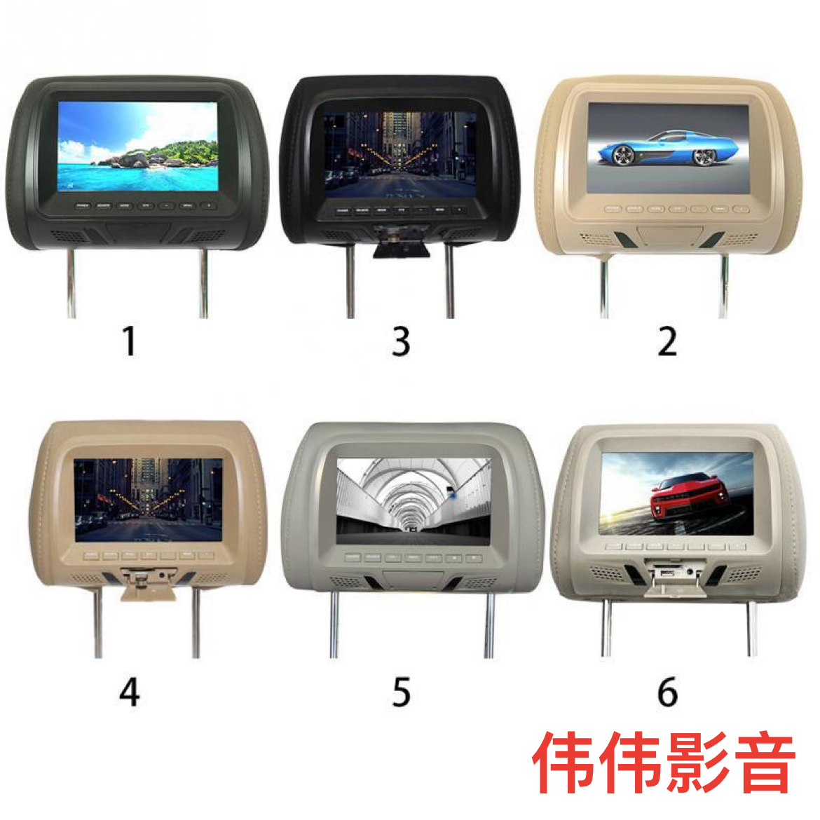 通用7寸头枕显示屏汽车载两路视频输入MP5靠枕高清后排液晶显示器