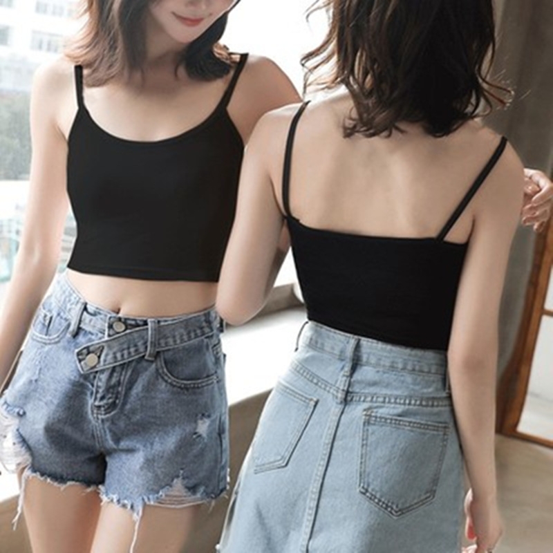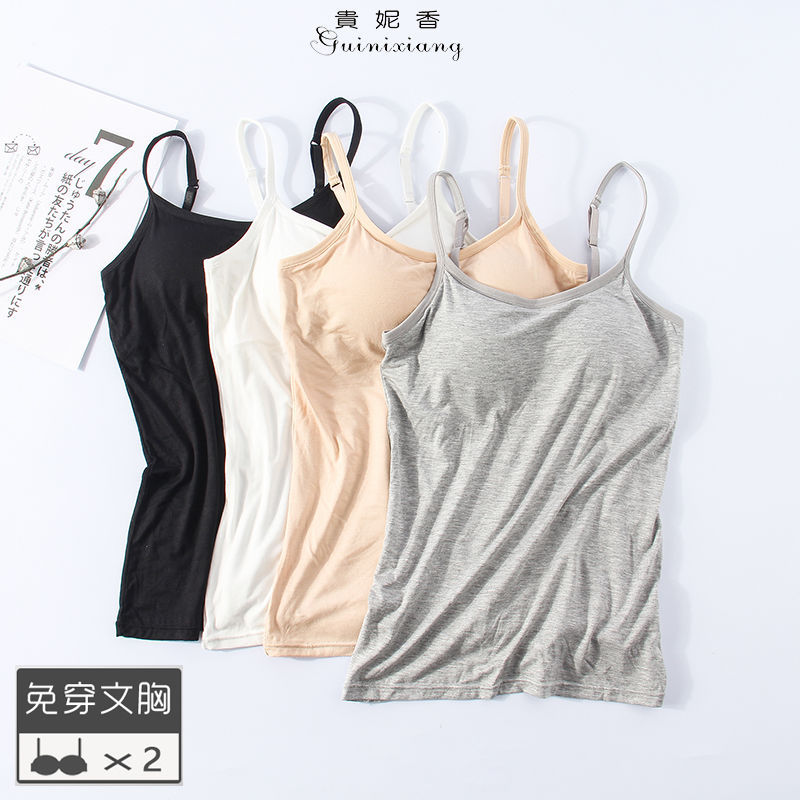 一体固定莫代尔棉胸垫女士吊带小背心女免穿内衣打底上衣学生外穿