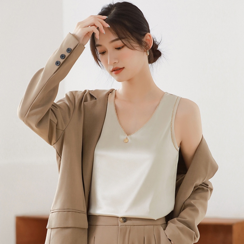 吊带背心女内搭夏季无袖外搭配西装缎面打底外穿宽松上衣厂家批发