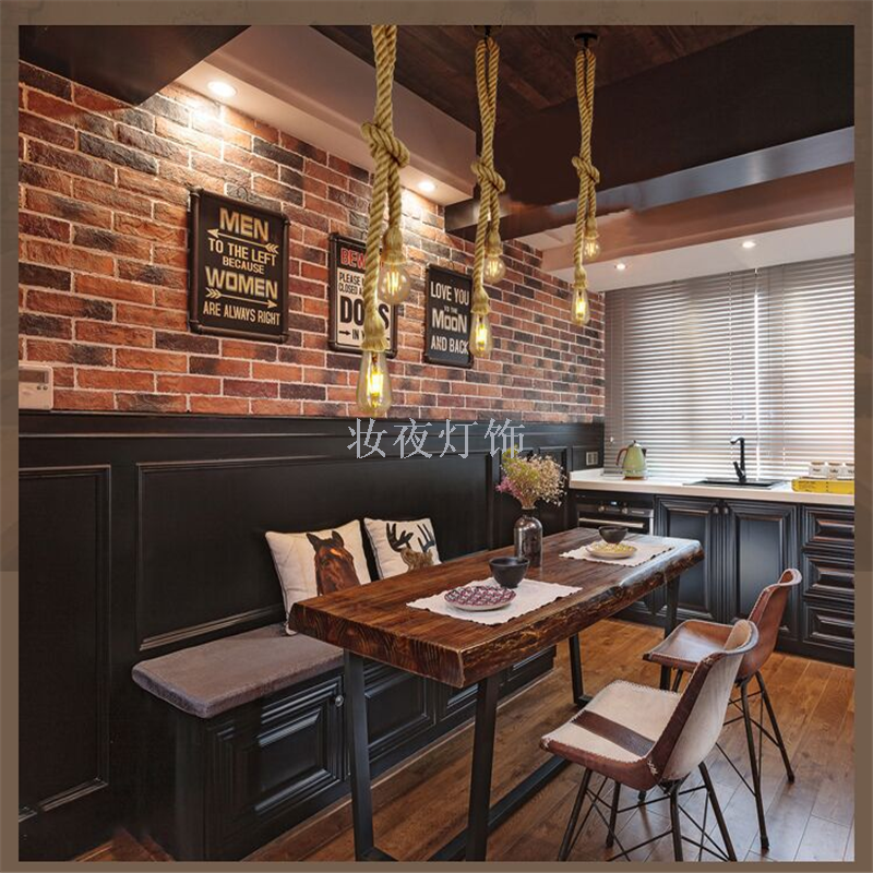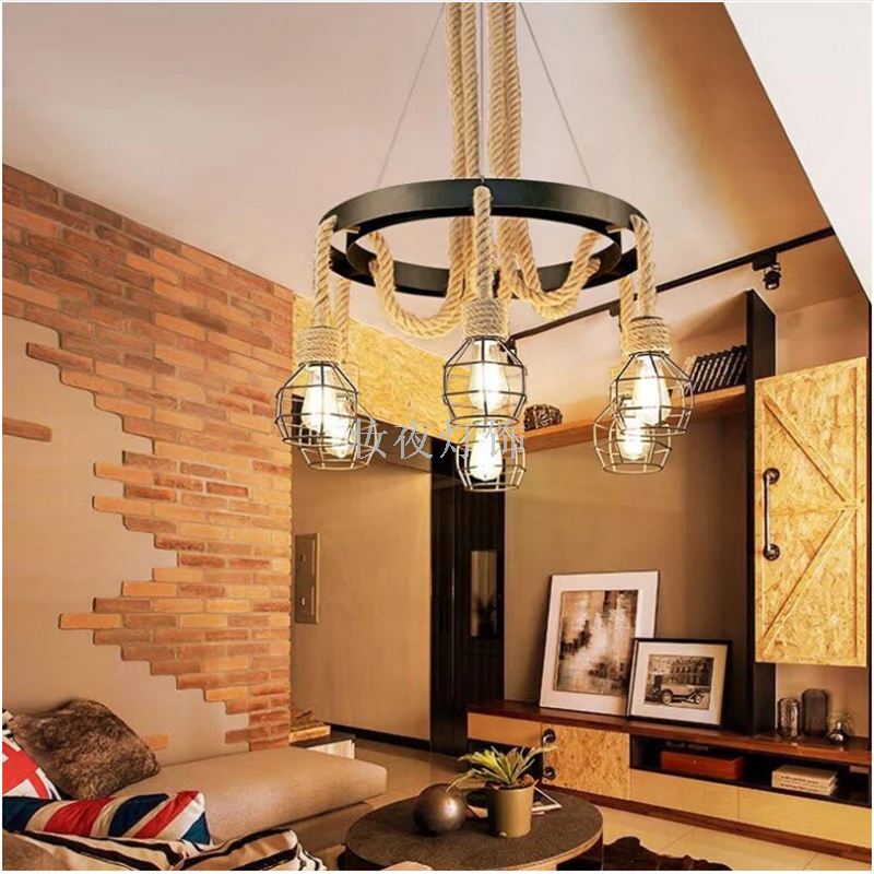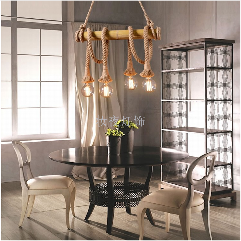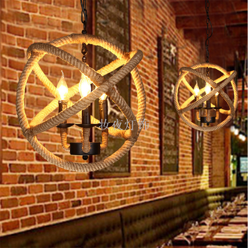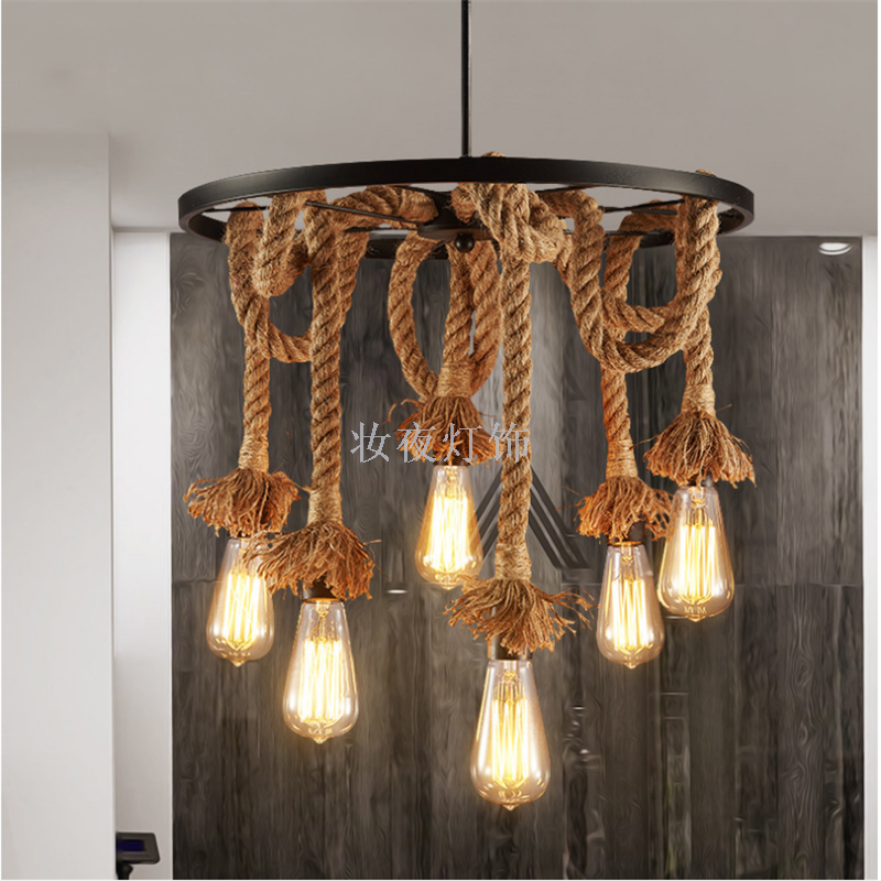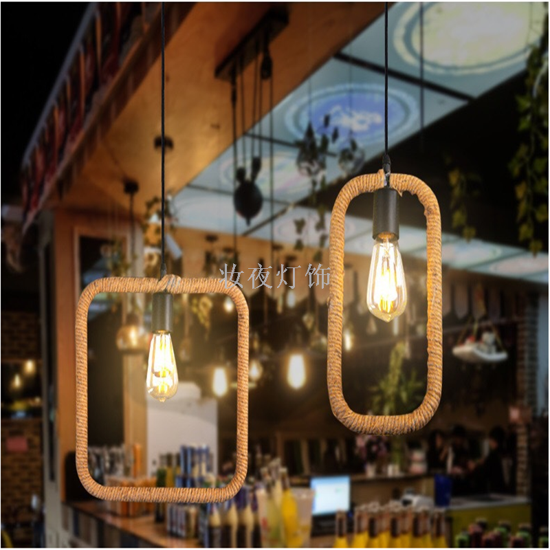 麻绳吊灯复古工业风网咖服装店铺商用个性创意清吧卡座餐厅奶花店