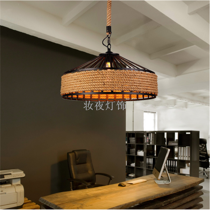 麻绳吊灯创意个性复古服装店铺灯餐厅大灯具理发店LED商用吊灯