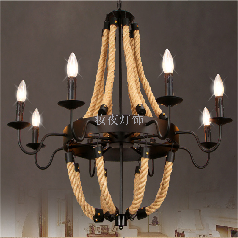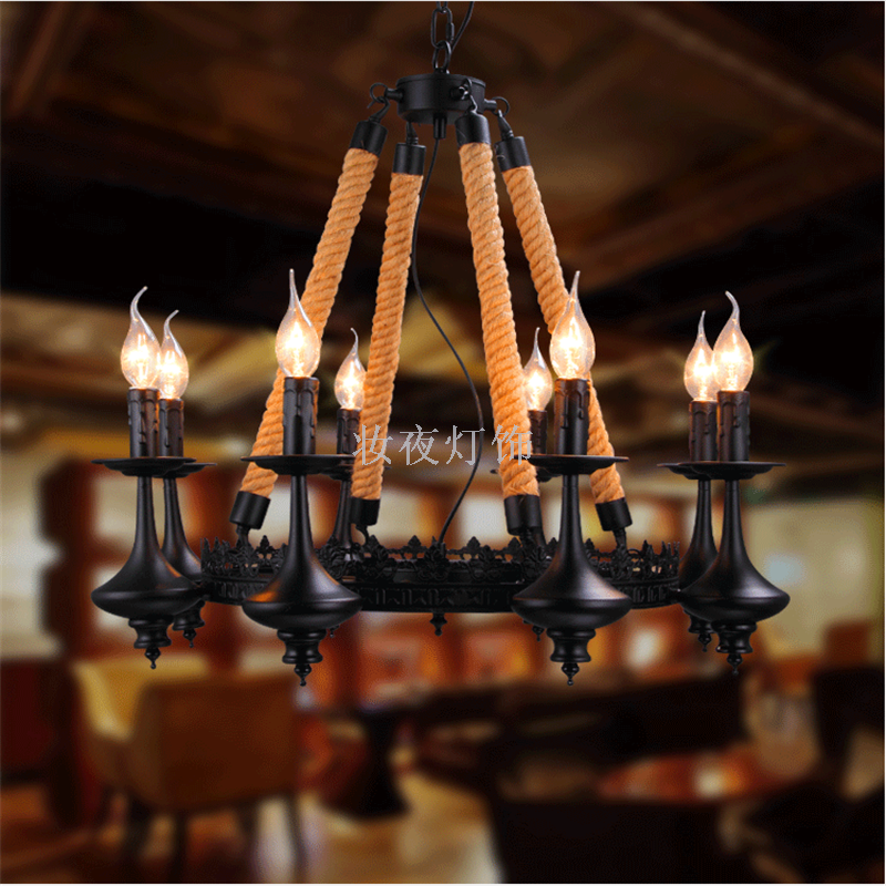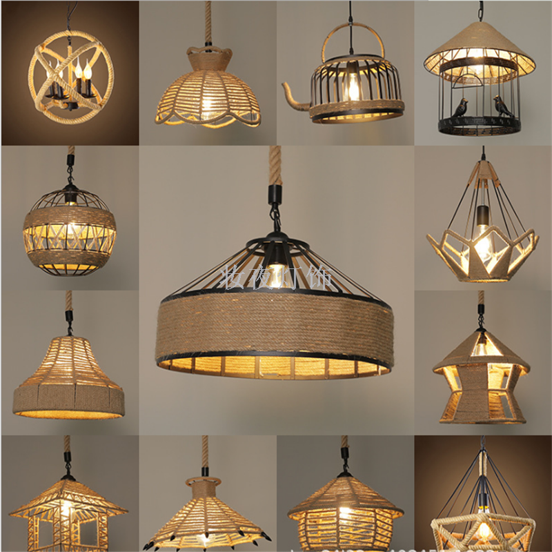 麻绳吊灯复古工业风吊灯服装咖啡店餐厅创意吊灯美式乡村灯 灯具