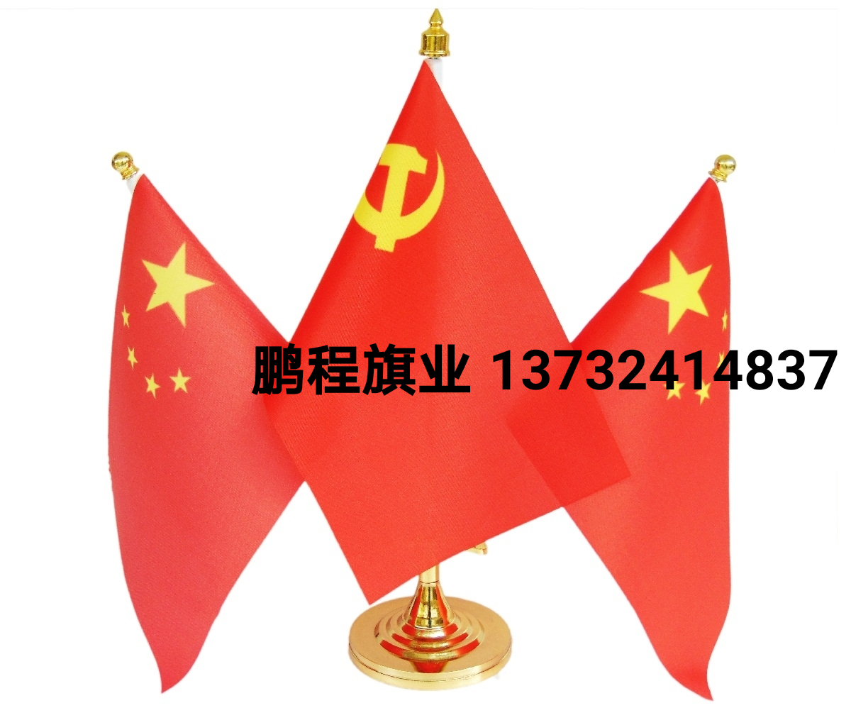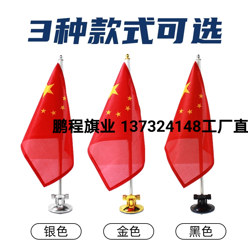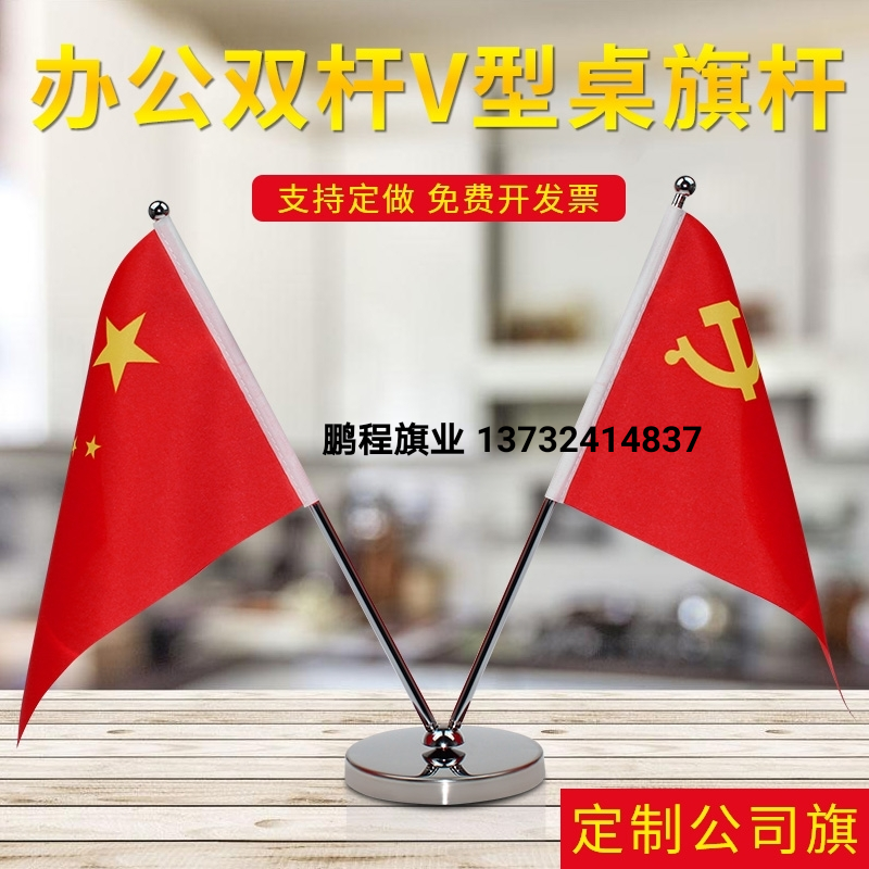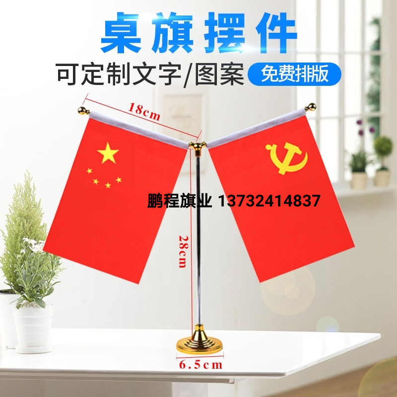 三杆党旗国旗摆件红旗办公室桌旗会议室桌面银色旗杆旗架谈判旗帜