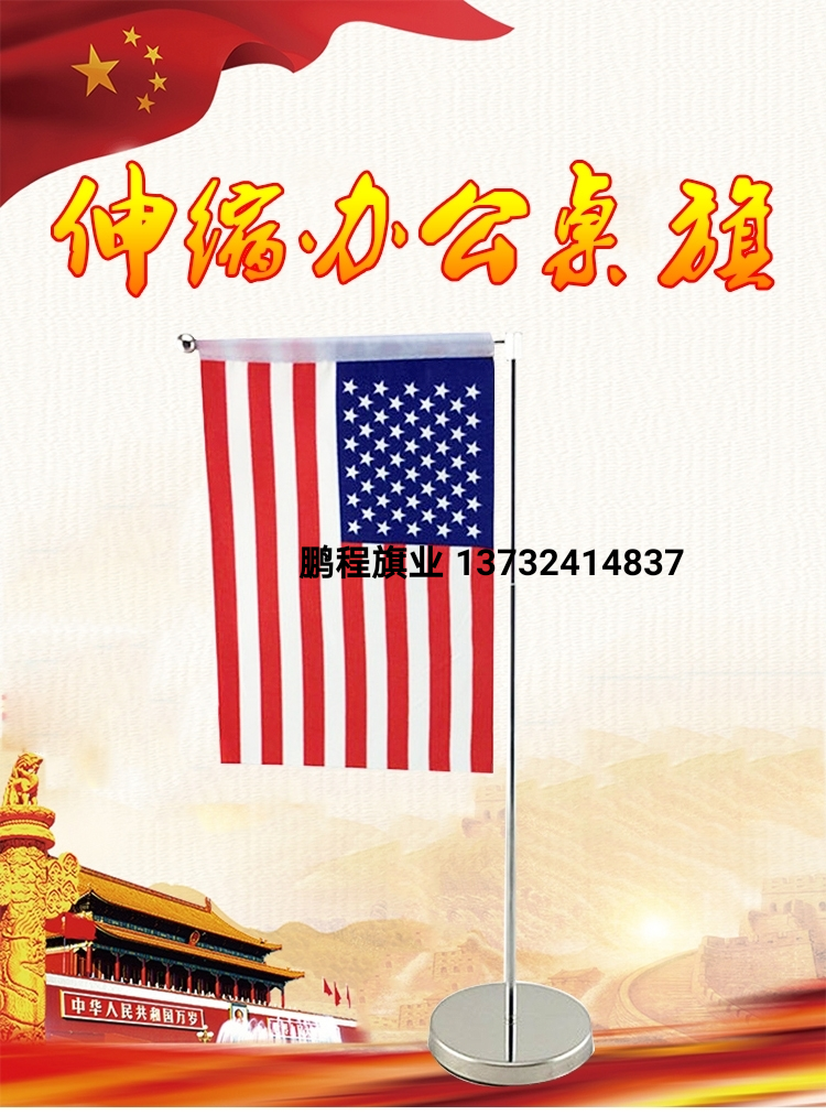 办公室桌面国旗党旗不锈钢伸缩摆件会议室场景布置小红旗架高档五