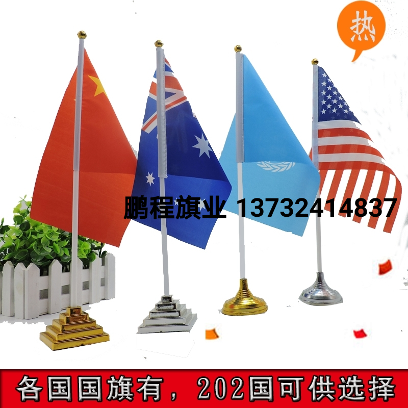 万国国旗单杆塑料镀金底座各国各地小桌旗塑料杆办公桌旗座会议室