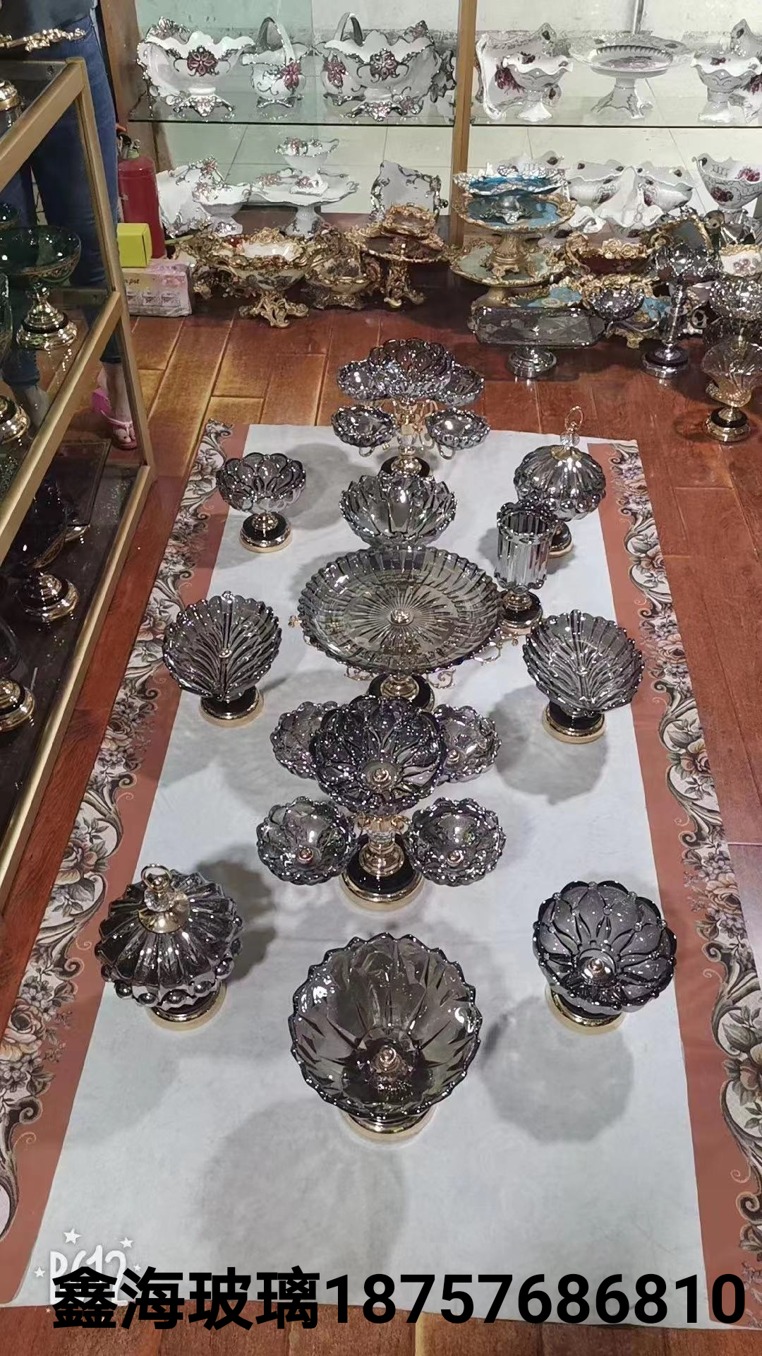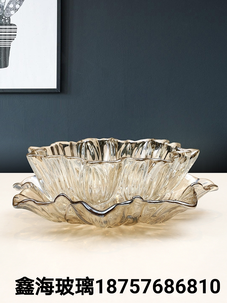 欧式大果盘花瓶糖罐套装轻奢样板间装饰果盘别墅装饰品玻璃工艺品