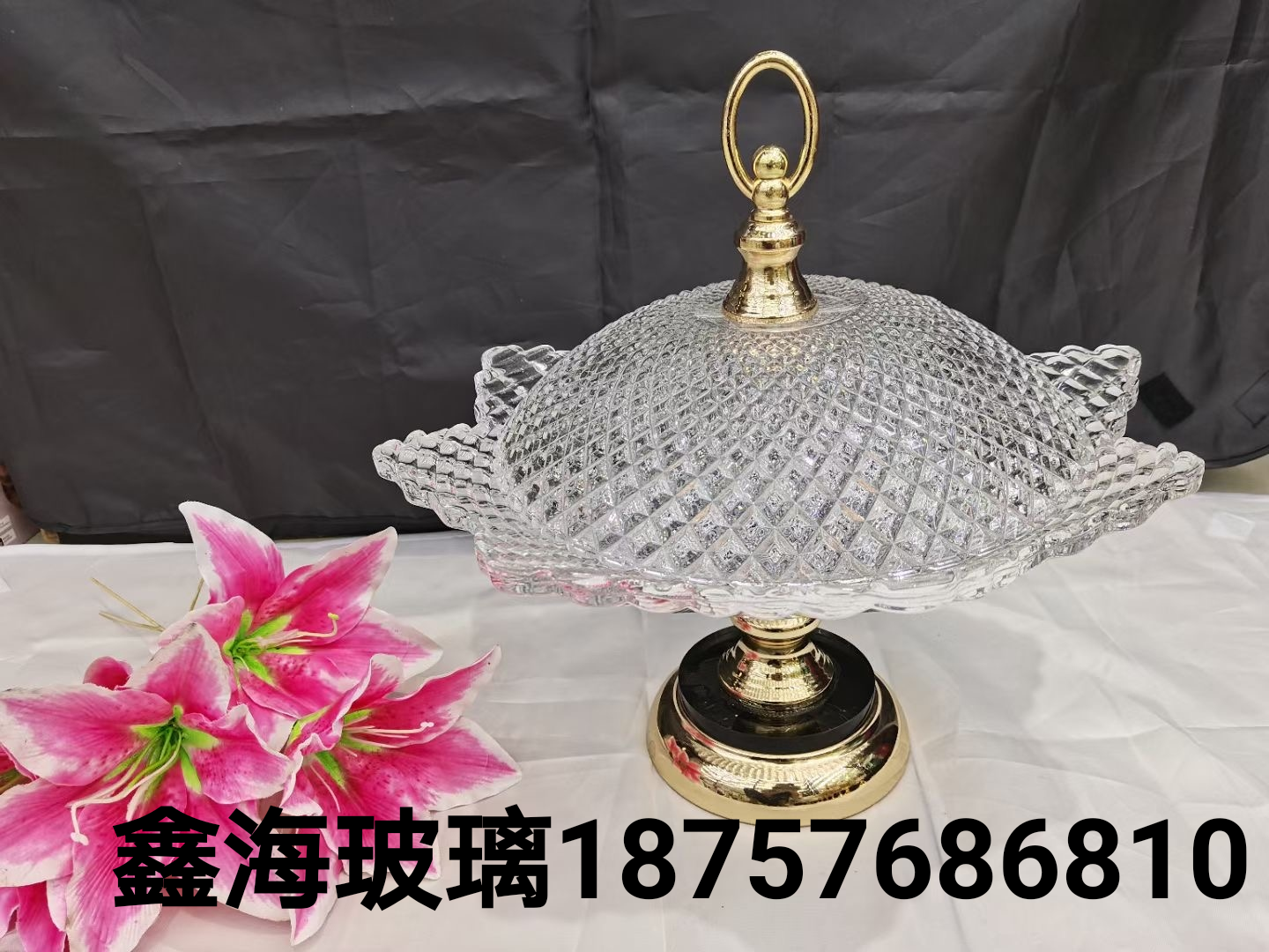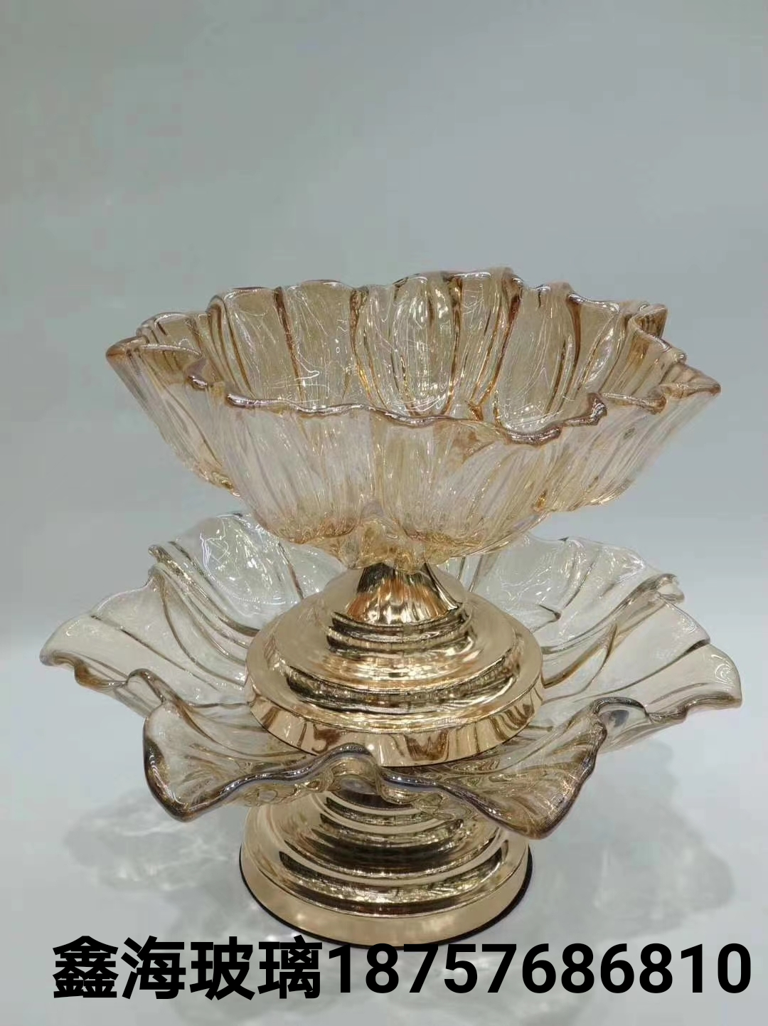 果盘工艺品玻璃果盘带底座金色糖缸烟灰缸阿拉伯中东外贸水果篮子