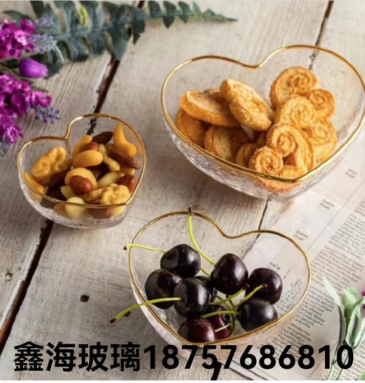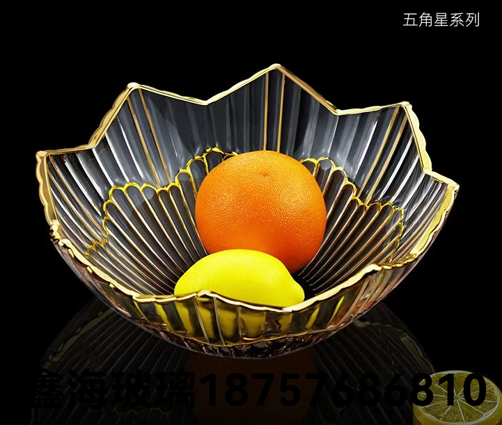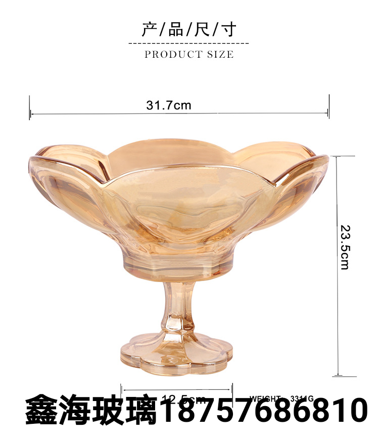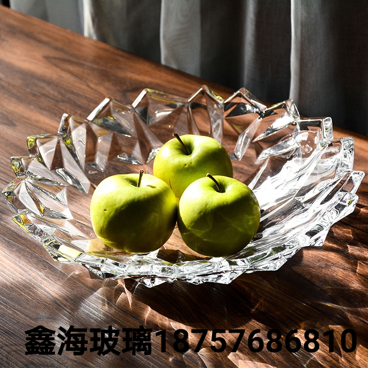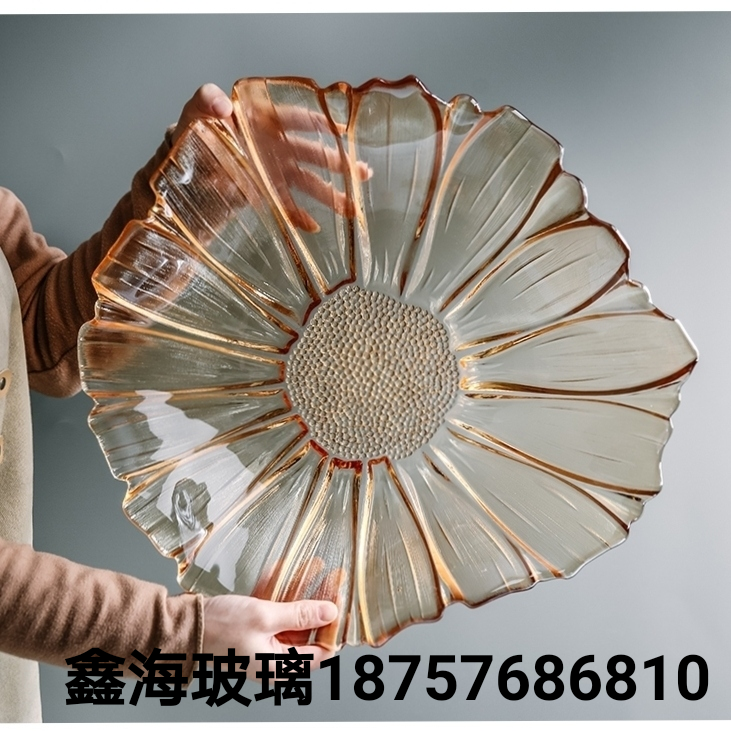 果盘玻璃工艺品欧式大果盘葵花荷叶果盘加厚无铅玻璃水壶盘金色盘