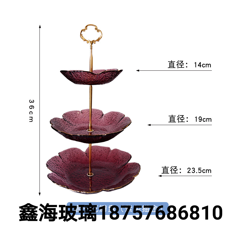 金边蛋糕盘三层玻璃盘水果饼干下午茶果盘甜品托盘三层玻璃蛋糕盘