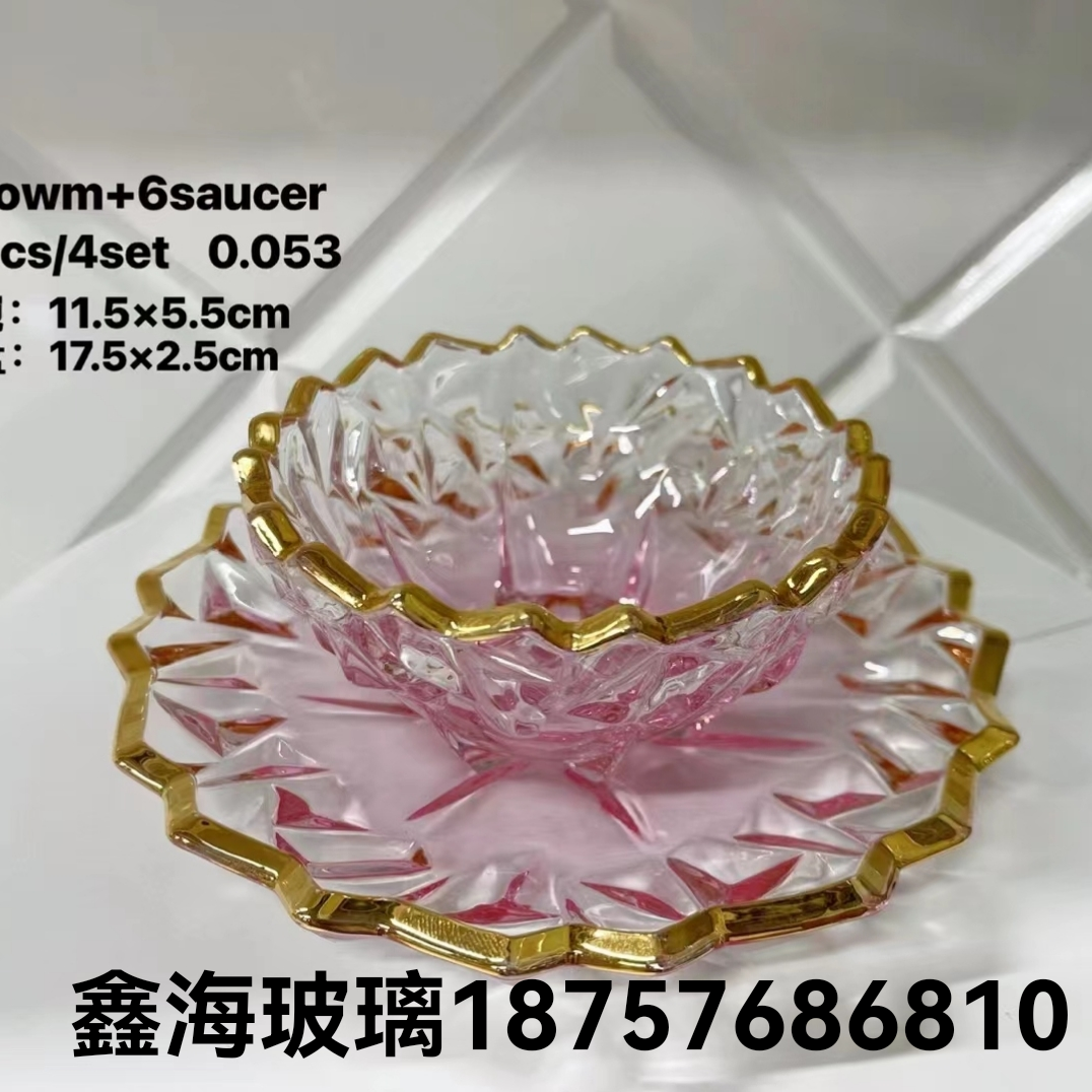 玻璃碗套盒 金色年华餐具五件套七件套碗 阿拉伯金色玻璃碗果盘