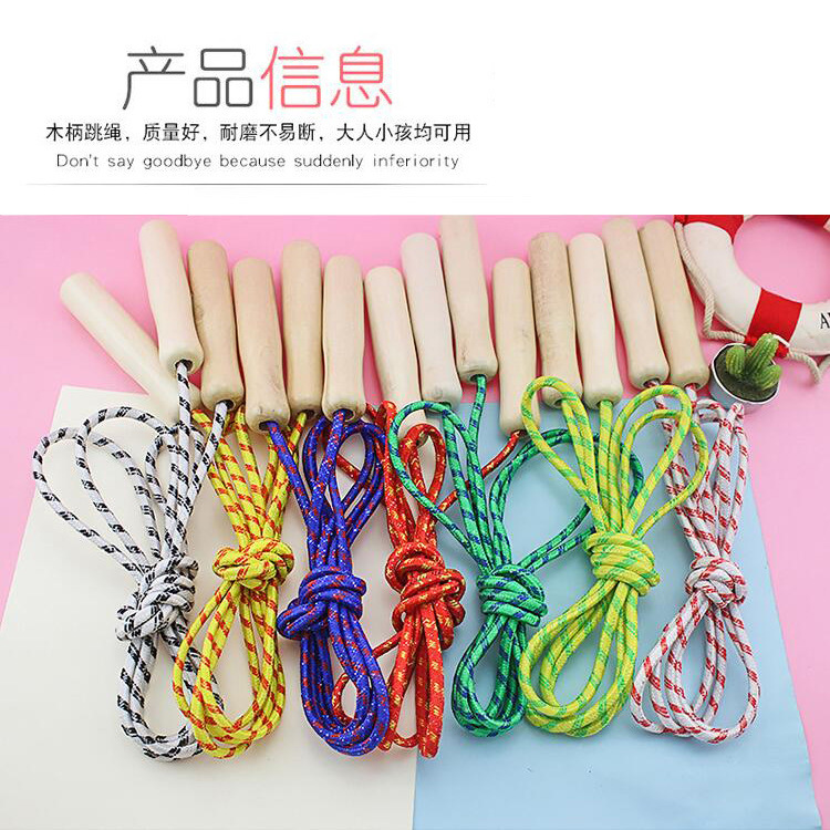 厂家直供木质手柄跳绳儿童运动休闲玩具学生体育用品尼龙木柄跳绳