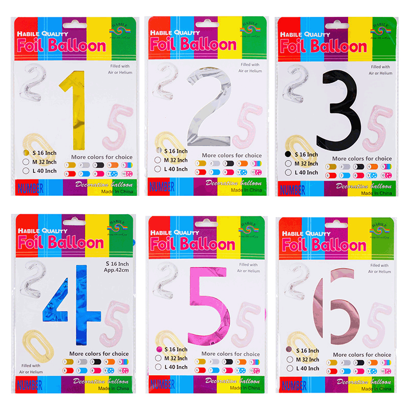 16寸美版瘦体数字气球 生日派对装饰铝膜气球卡头精包装气球批发