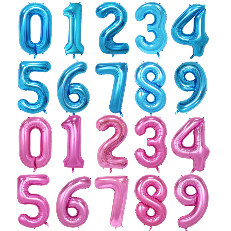 亚马逊跨境气球套装大数字气球40寸瘦版蓝色粉色数字铝箔气球批发