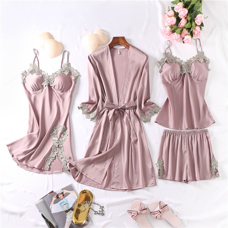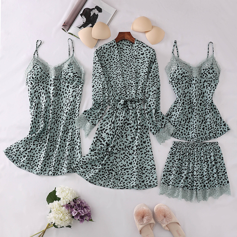 春款吊带短裤睡袍四件套 性感舒适女士家居睡衣 花边家居服批发