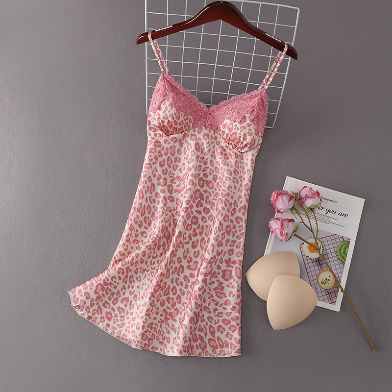 新款蕾丝豹纹网红吊带睡女夏季 性感女士睡裙4色可选厂家支持批发