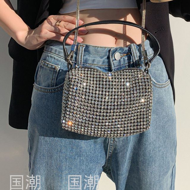 aw大王水钻包亚历山大真皮闪钻包手提包金属链条单肩包小方包同款