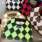 包包女韩版小众设计撞色菱格针织手提包手拎包出街通勤腋下包收纳