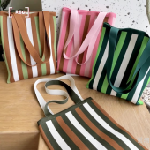 韩版小众设计撞色条纹针织手拎包单肩包简约百搭大容量购物袋女包