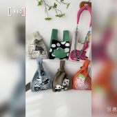 包包女韩版小众设计可爱熊猫针织单肩包手提包手拎包大容量托特包