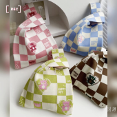 包包女韩版小众设计棋盘格爱心熊针织单肩手提包手拎包学生手腕包