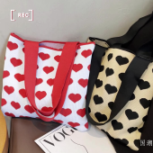 小众设计撞色心形针织单肩包手提包学生简约百搭通勤大容量帆布袋