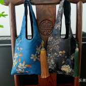 小众设计国风花卉针织单肩手拎包高级感百搭大容量购物袋流苏挂坠