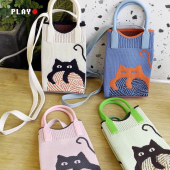 小众设计新款硅胶迷你单肩斜挎手机包可爱猫咪针织手提包零钱包女