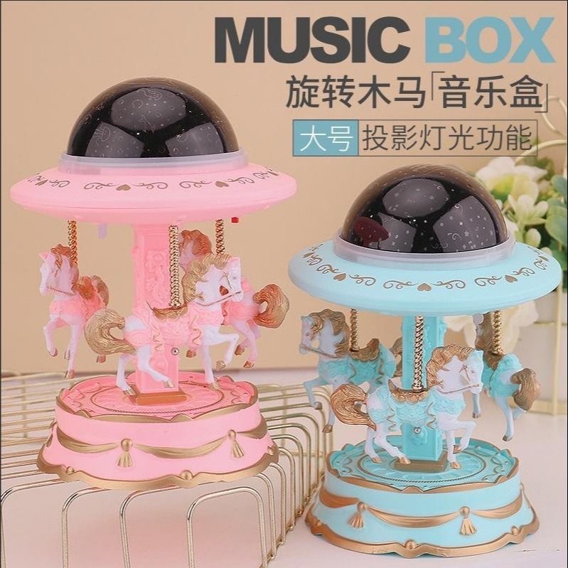 厂家直销旋转木马星空投影灯八音盒旋转木马音乐盒大号