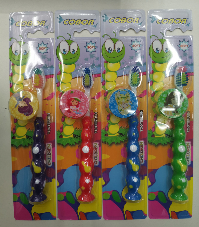 海豚手柄软毛毛毛虫百货批发地摊 带护盖 英文外贸出口 儿童牙刷