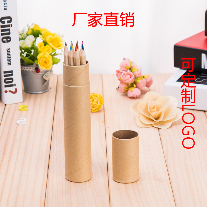 P-0303-04儿童彩色铅笔12色学生绘画涂鸦涂色彩原木无毒铅笔筒装