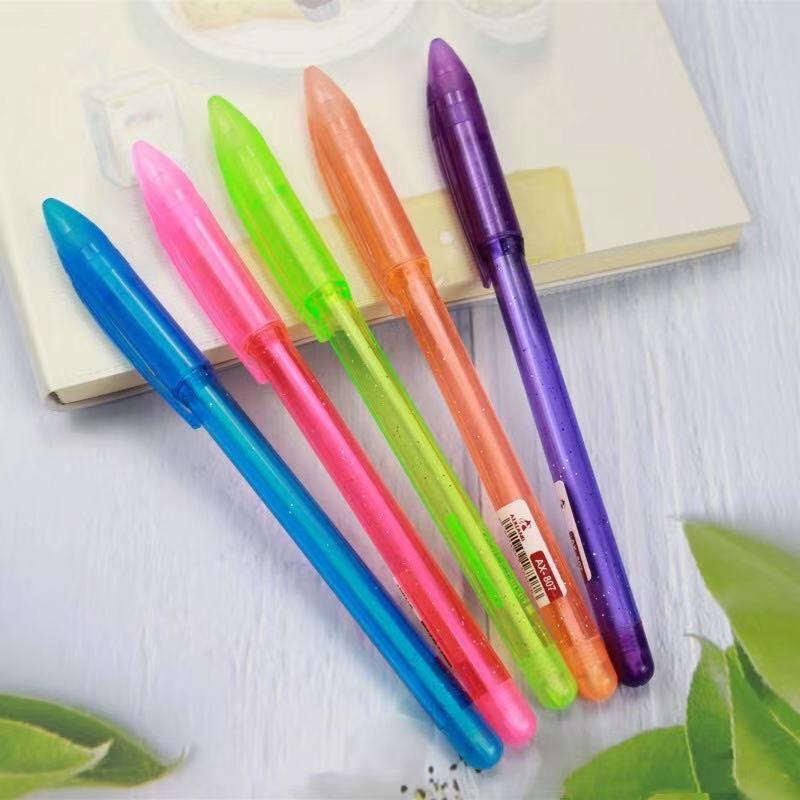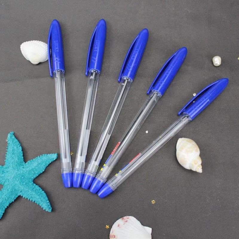 新款纯色考试专用笔 专用圆珠笔透明笔杆塑料笔筒 子弹头圆珠笔
