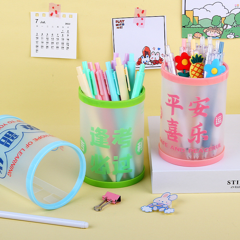 励志文字笔筒圆形透明可折叠收纳筒学生桌面收纳盒笔筒学习小礼物