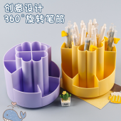 R-0000-2创意时尚多功能笔筒桌面收纳盒圆形磨砂学生办公桌笔筒