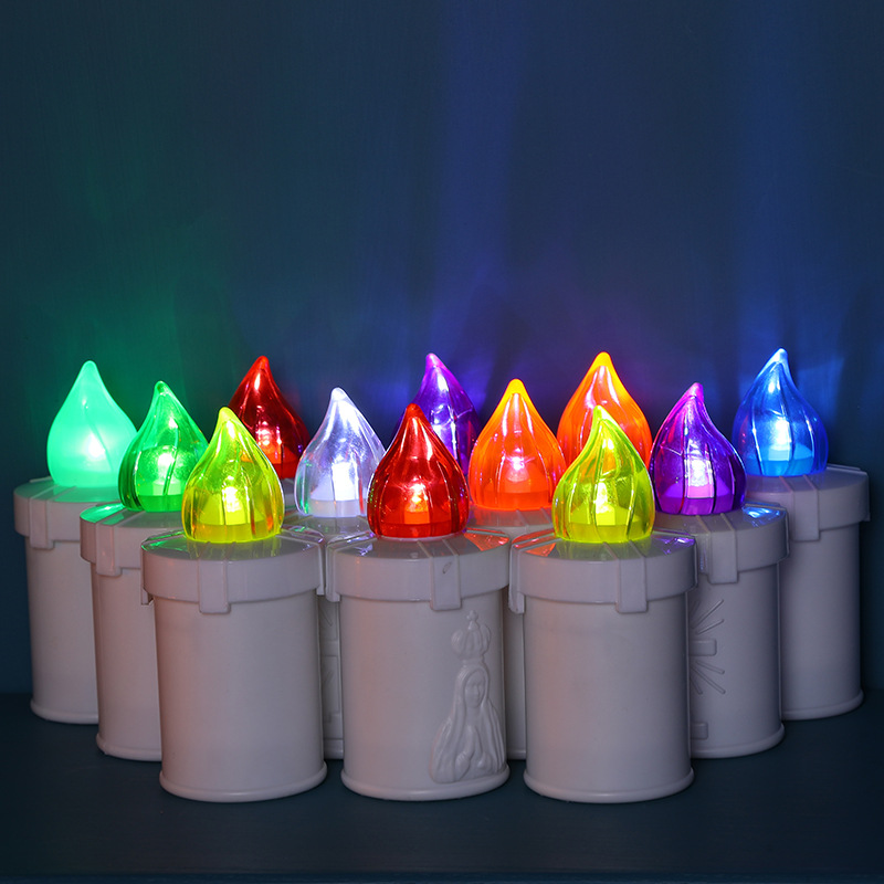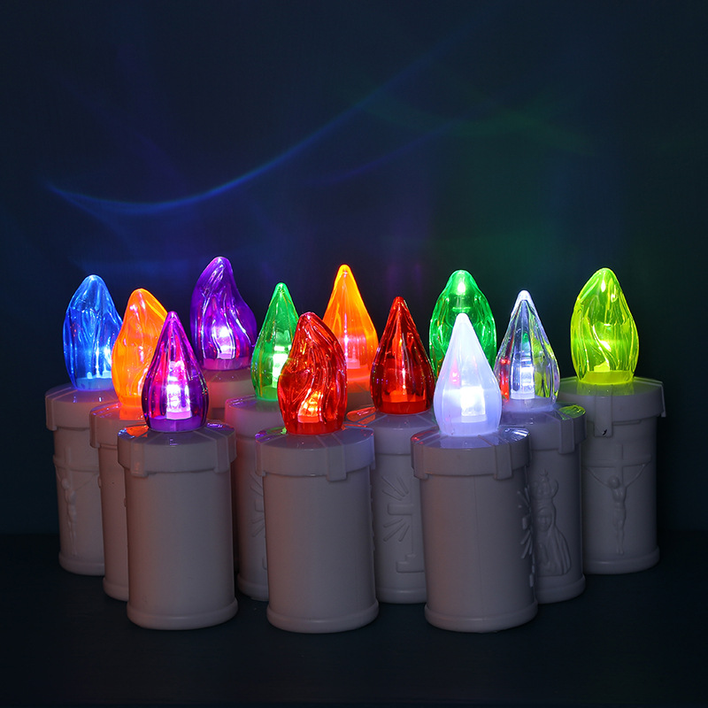 基督装饰电子蜡烛灯墓灯塑料装饰带盖LED蜡烛灯摆件红色仿真蜡烛