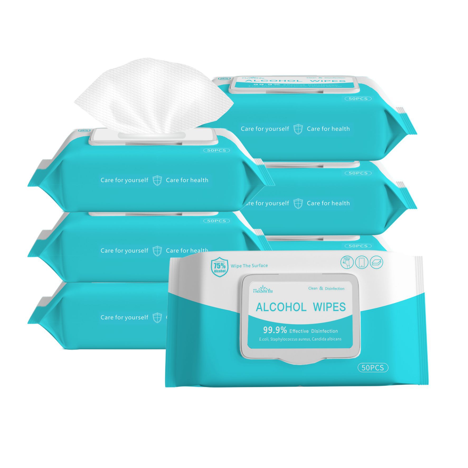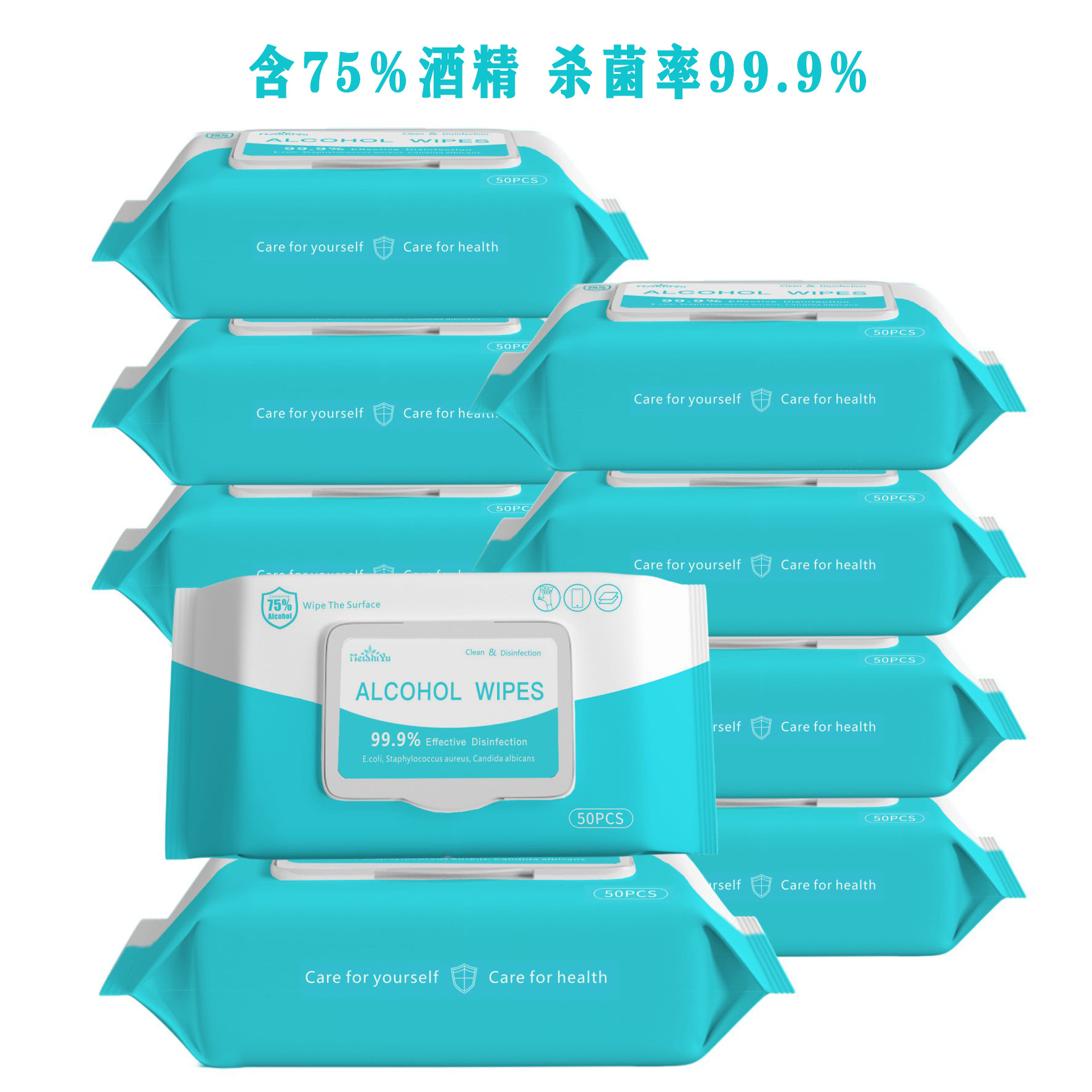 含75度酒精卫生消毒湿巾50片英文版免洗湿纸巾一次性湿巾oem