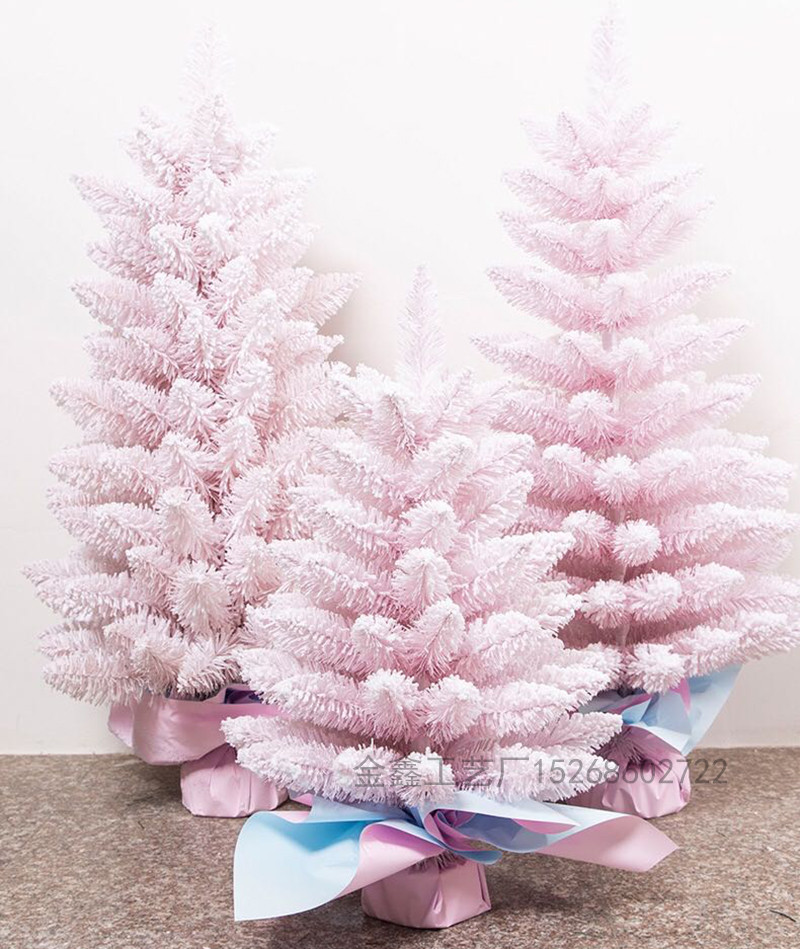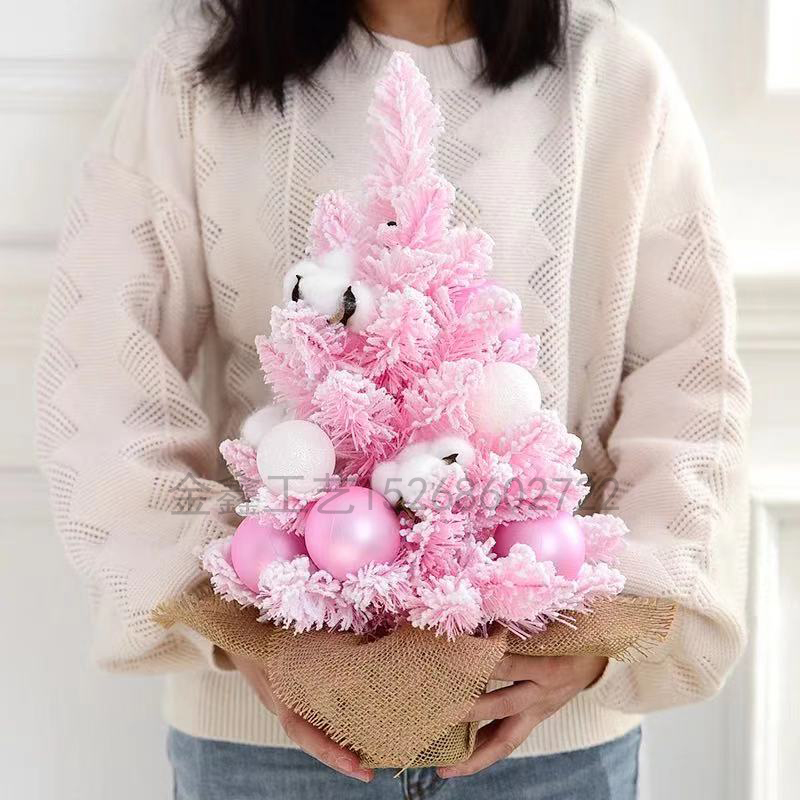 ins风迷你粉色圣诞树喷雪桌面圣诞装饰摆件落雪植绒圣诞树盆栽