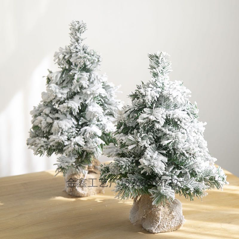 圣诞树落雪桌摆植绒圣诞树迷你圣诞装饰品松针松柏平安夜花艺配件