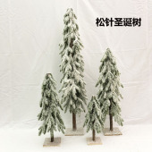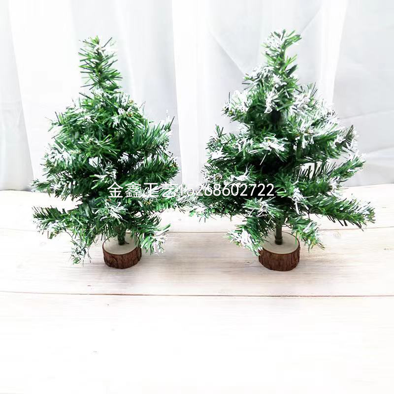 小号圣诞树落雪木头底圣诞树桌摆圣诞节平安夜橱窗装饰品新年礼物