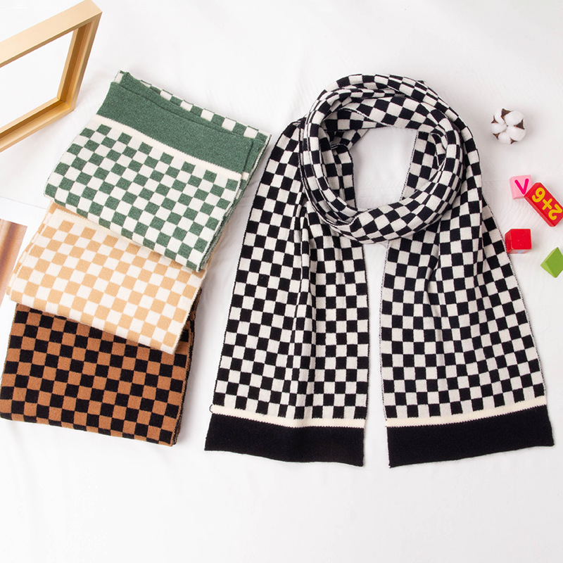 棋盘格围巾2025秋冬新款围巾女北极绒保暖黑白格围脖学生围巾批发