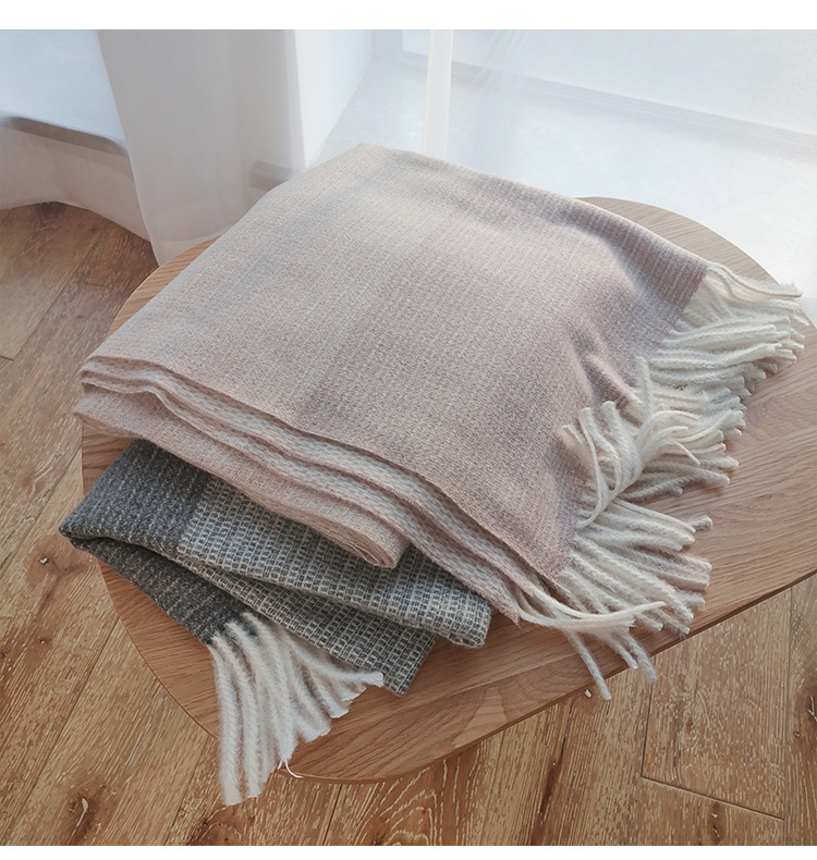 新款美拉德格子仿羊绒围巾女冬季高级感马海毛加厚保暖披肩围脖潮