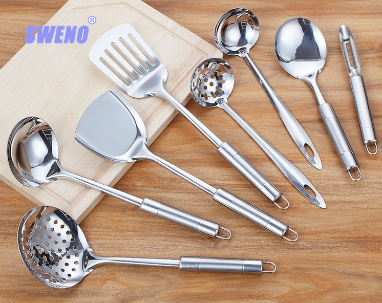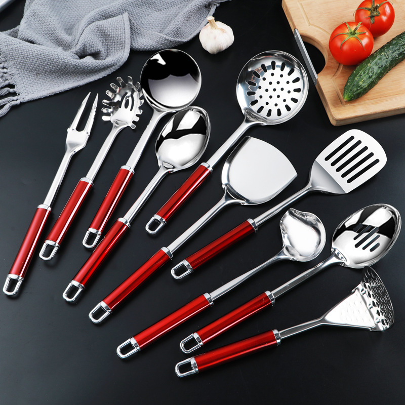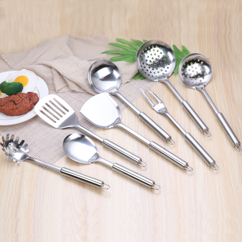 勺铲锅铲不锈钢烹饪 家用加厚圆管柄厨具 厨房用具八件套厂家批发