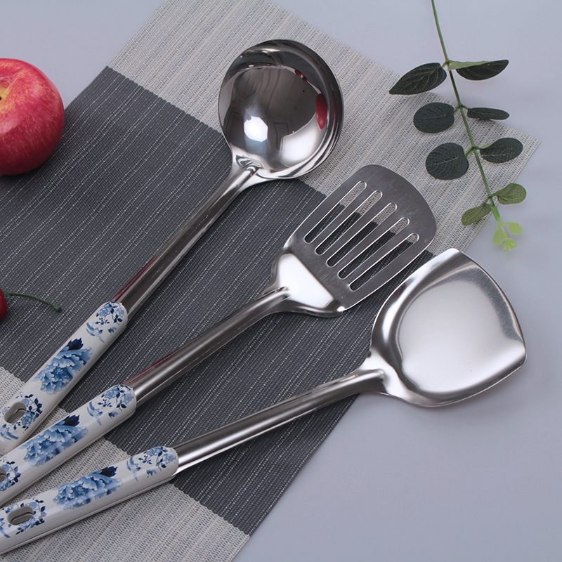锅铲面捞汤勺 陶瓷不锈钢厨具套装 青花瓷6件套 礼品酒店家用品