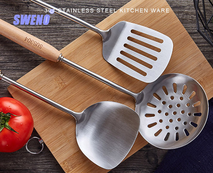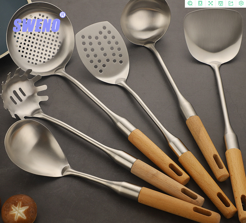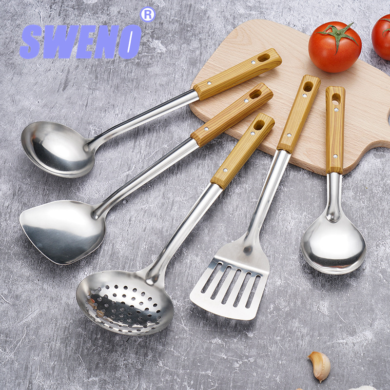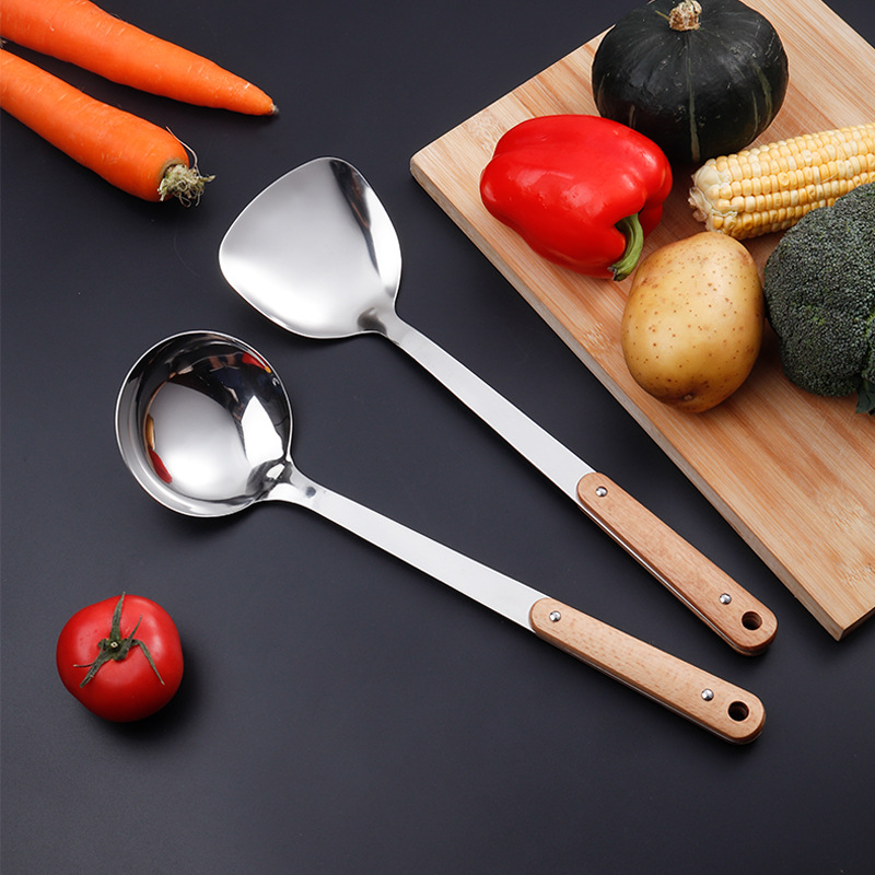 锅铲厂家直销不锈钢木柄厨房小工具防烫煎铲漏勺粉捞烹饪厨具套装