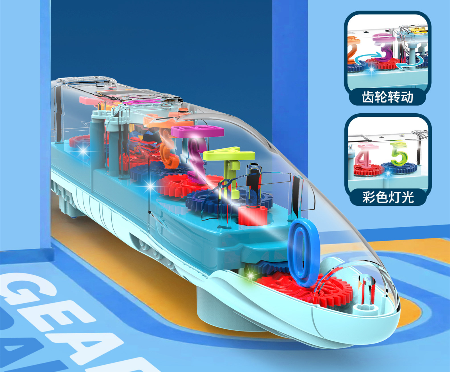 电动万向灯光音乐直升飞机火车头闪光儿童机械齿轮透明玩具机器人
