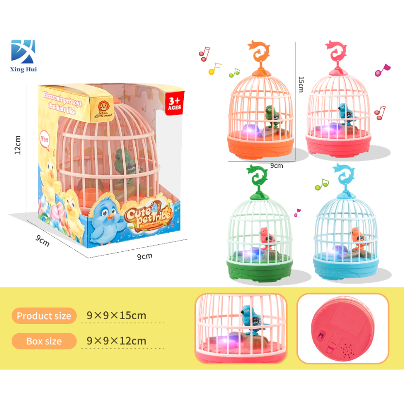 儿童创意带灯光音乐男孩女孩夜市广场迷你仿真鸟笼宠物笼感应玩具