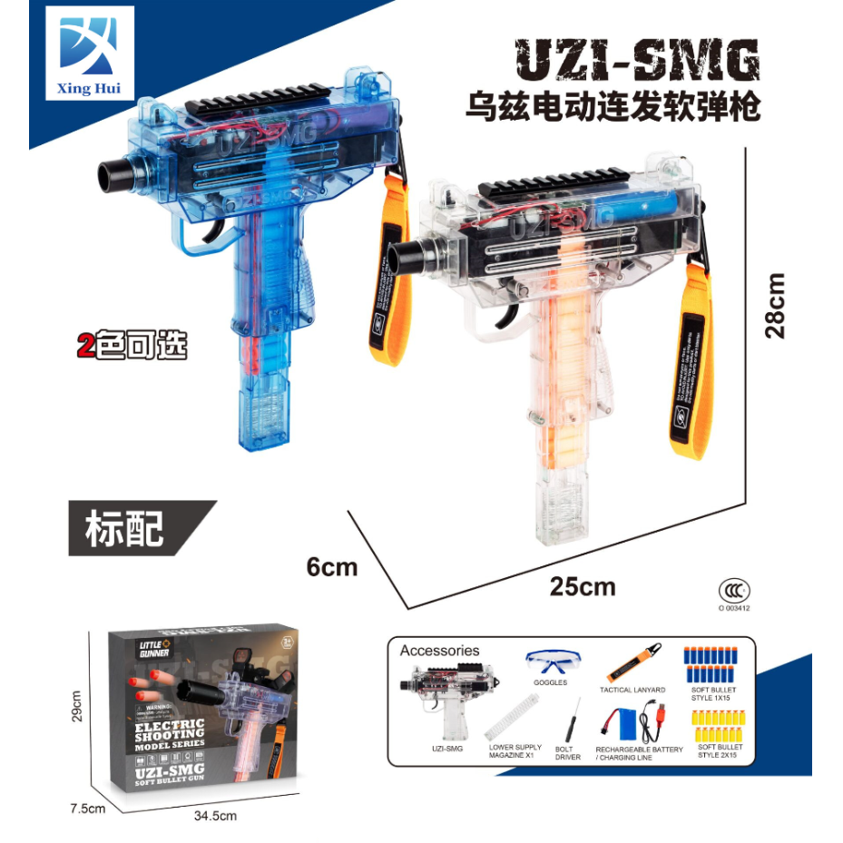 高速飞轮UZI软弹枪电动连发乌兹EVA装备冲锋枪玩具枪跨境充电