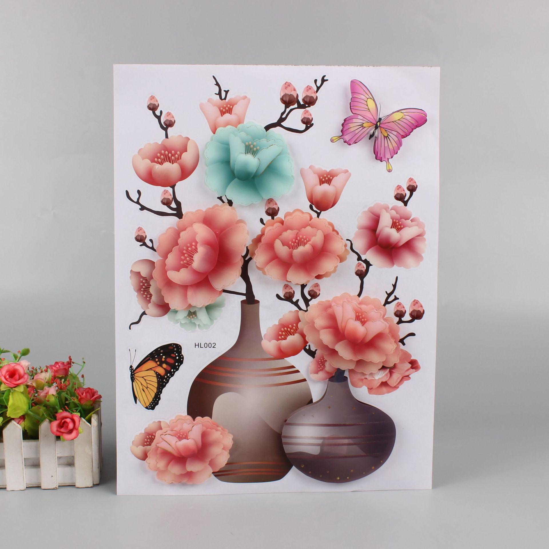 3D墙贴立体花瓶蝴蝶装饰贴画立体墙贴花瓶装饰家居房间现货层层贴
