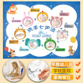 SK6106 洗手七步法 幼儿园早教医院学校家用餐饮卫生间示意墙贴