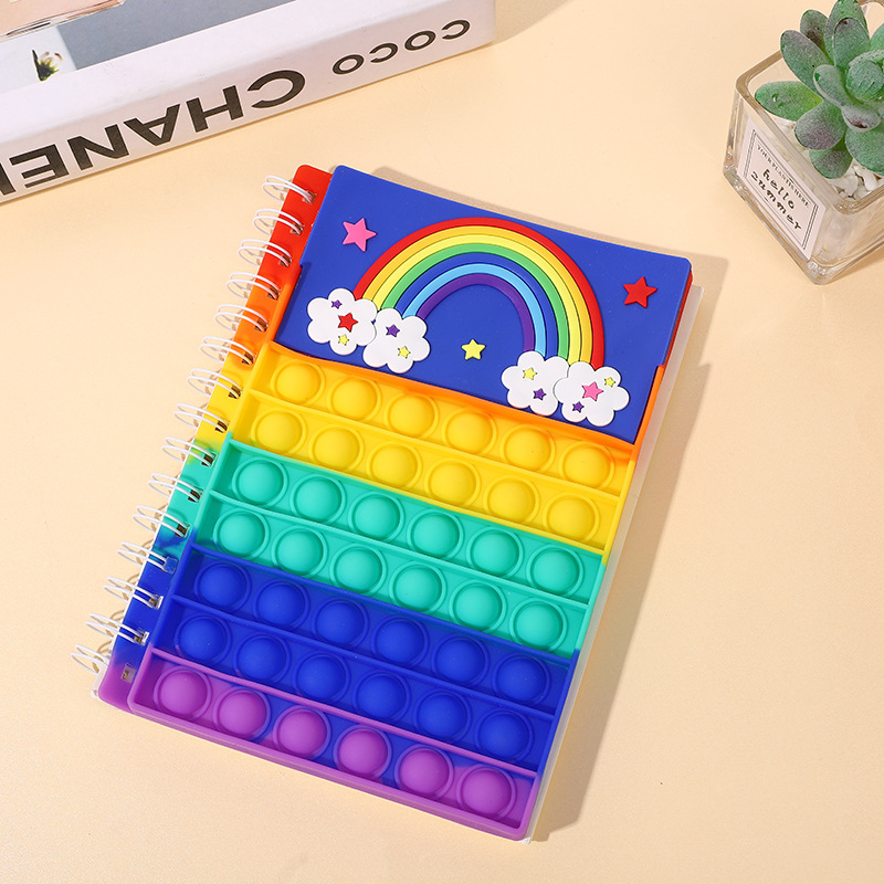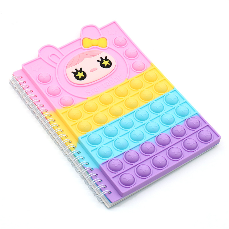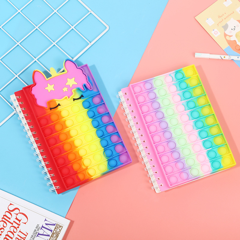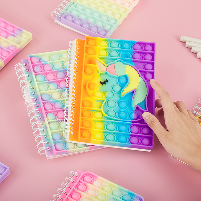 儿童减压文具卡通独角兽记事本子泡泡按压硅胶学生练习线圈笔记本